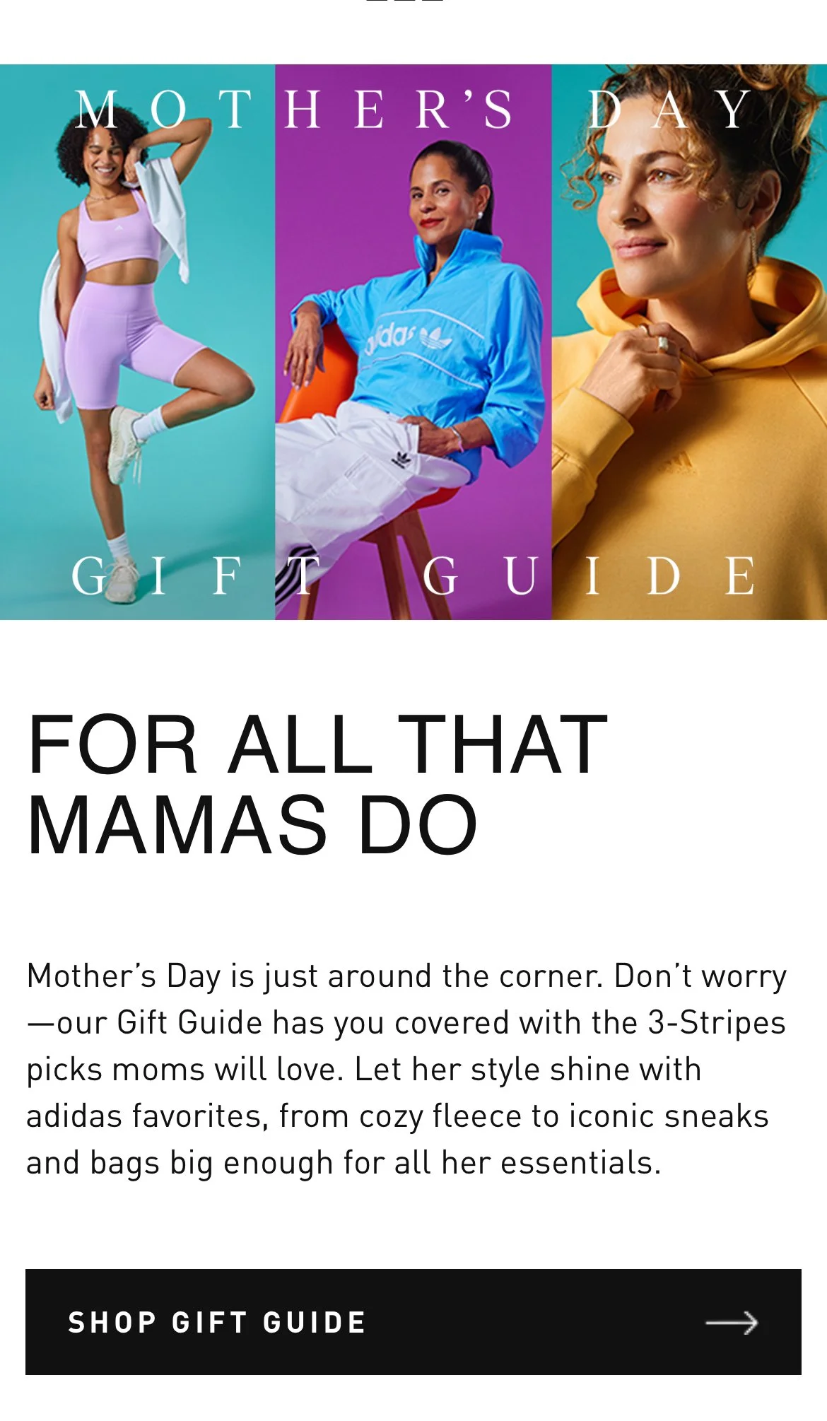 A fun take on the usual Mother's Day fare, this campaign was all about highlighting each Mother's unique vibe—Sport, Cozy, and Style.